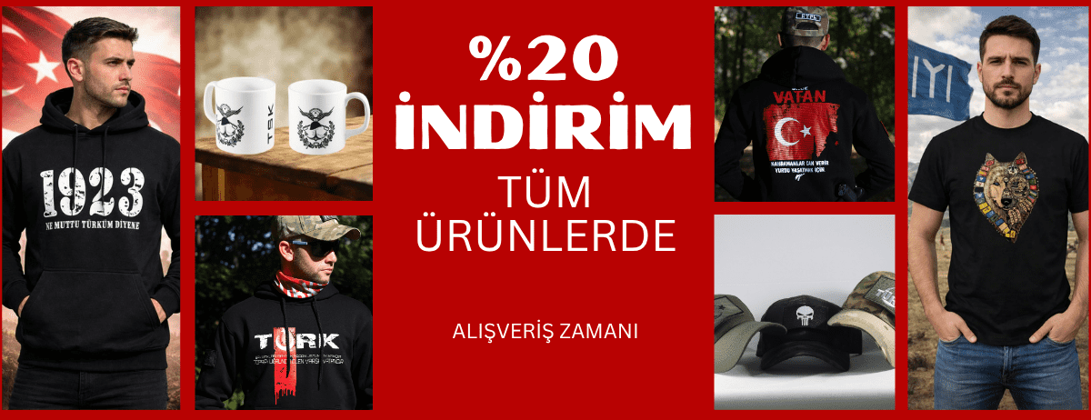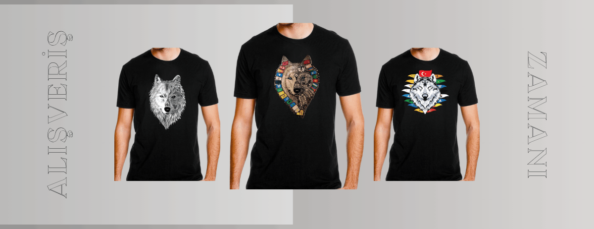 Kurt Türk Devlet Bayrakları Baskılı Tişört